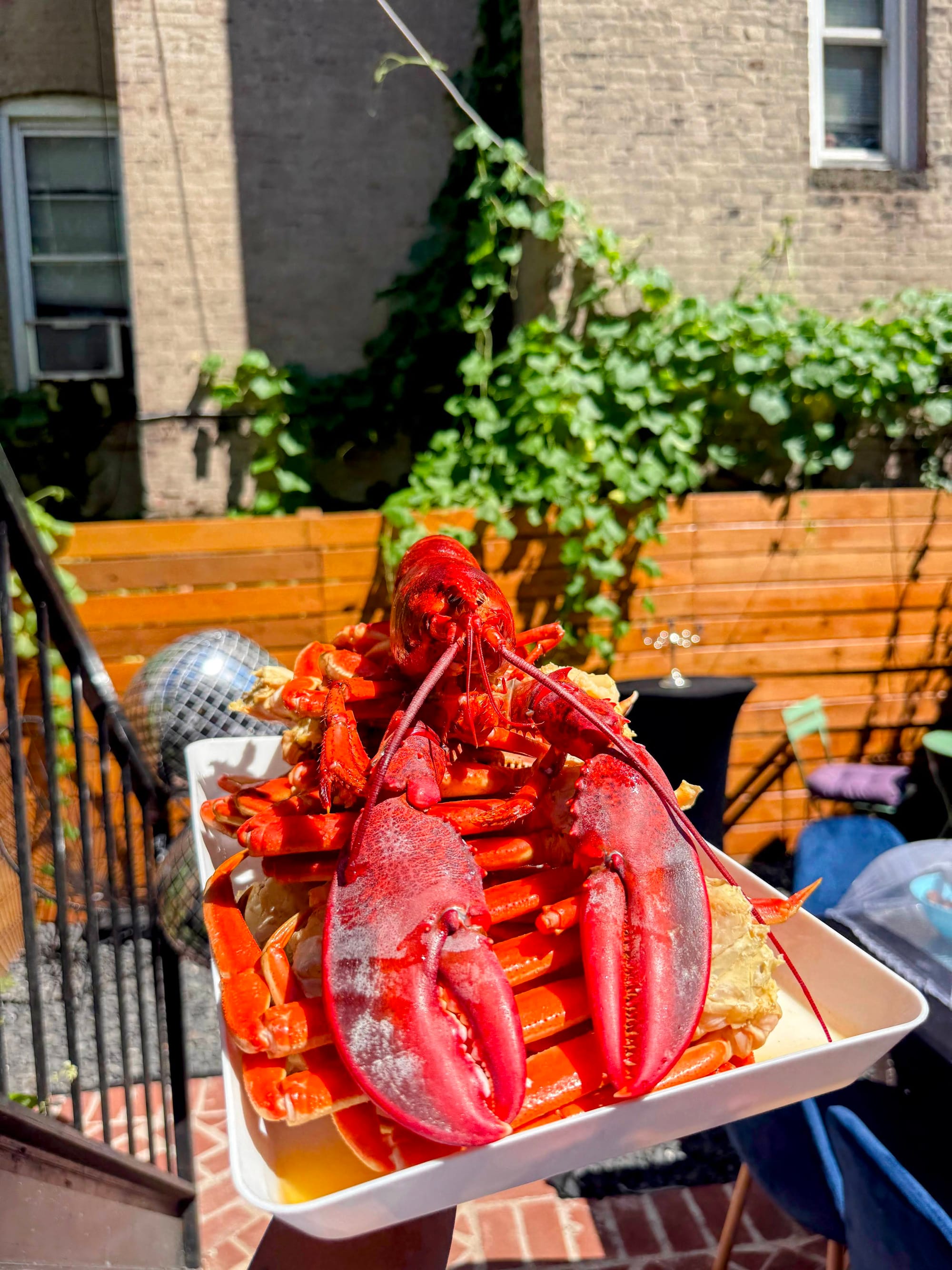 The party had everything! Kim Zolciak inspired red Solo cups! A "Don't Be Tardy for the Party" playlist featuring "On Display" by Melissa Gorga, and a lot of yacht rock and lady hip hop! A plate with Real Housewives of Potomac former star Monique Samuels' face on it! Everyone wearing white even though it wasn't mandatory! Actual seafood in the form of lobster, Maryland blue crab, snow crab clusters, shrimp drenched in butter and Old Bay with corn, potatoes, and andouille sausage! A bomb banana pudding! My friend (and incredible hairstylist) Jason Lamar catching party-crashing yellow jackets with his hands! Spicy hot jerk chicken and homemade guacamole! My 'Peter Thomas Is In Prison' Sorrel Punch made with Joy's Island Spice (shoutout to my girl Junny Hibbert for introducing me to that delicious elixir)! My girl Susan Lee Kim serving body-ody-ody (along with quite a few others)! Blow up disco balls! Backyard decor and design by Jomario! Re-enactments of fun #RHOA moments! FASHIONS! And photos by the legendary Audrey J. Bernard of the New York Beacon!